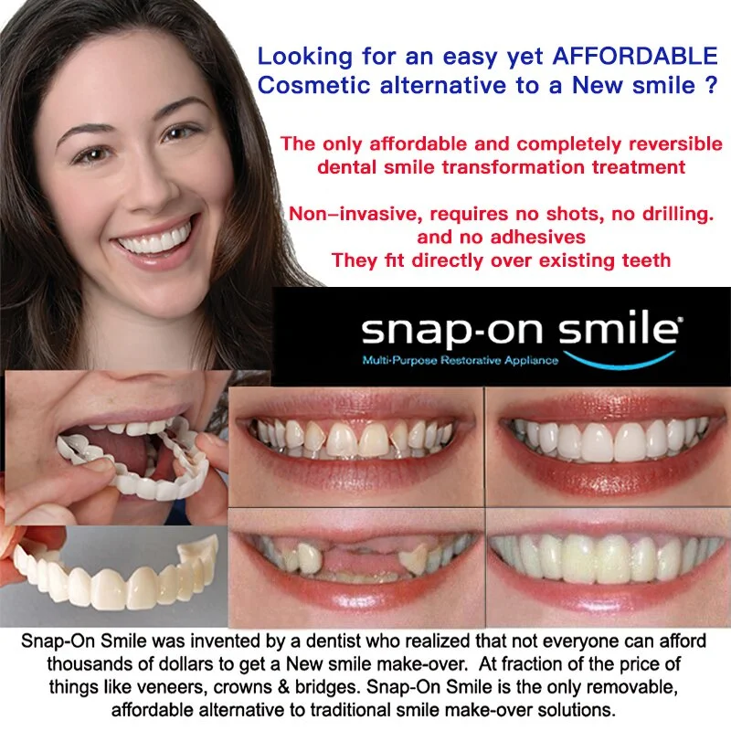 Do you often feel embarrassed about your smile or your imperfect teeth? No need to go to the dentist to have it fixed! Use the Snap-On Dentures instead and achieve the picture perfect smile youâve always dreamed of but without costing you a fortune!
