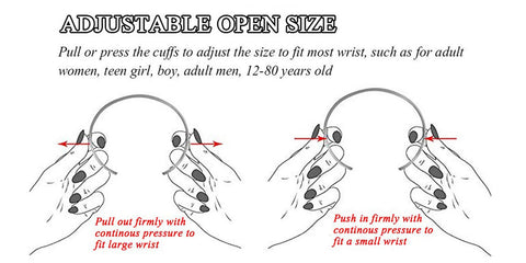 - Measurements: Diameter 2.5" Adjustable openings designed to fit most wrists.